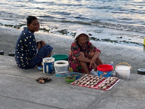 Our morning walks allowed us to observe some scenes in the city. Along the R.T. Lim Boulevard, there are stretches of what was probably a public beach. We saw these vendors along the shore selling shellfish and clams.