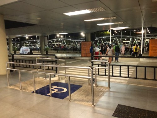 Passengers need to cross to the parking lot where their fetchers await them or where they can book a vehicle to take them to their destinations.