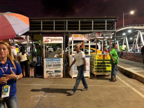 Transport services await passengers at the parking area. In other airports, these are located near the arrival exit. They are here probably due to security concerns. One can easily book a vehicle (usually a car or van) from Laguindingan Airport to typical destinations like Cagayan De Oro and Iligan City.