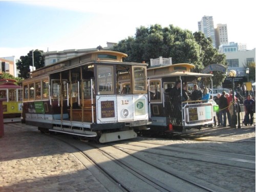 San Francisco’s cable cars at the Hyde Street turnabout ca. 2011.