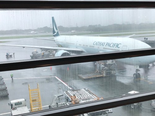 This Cathay Pacific plane landed safely before noon and later departed for Hong Kong without incident.
