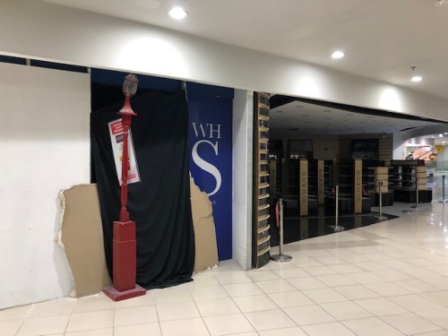 What used to be a WHSmith convenience store is now boarded up. I assume there are still some items inside unlike the other closed stores where only the shelves remain.