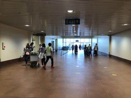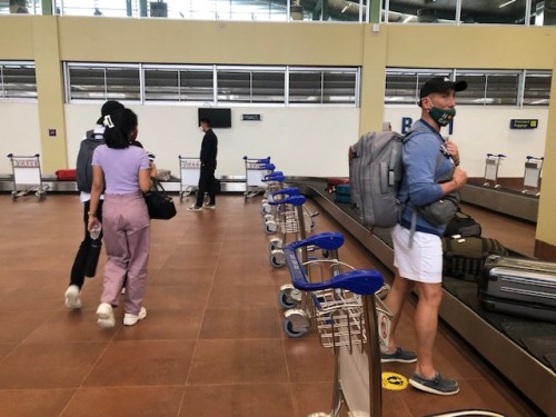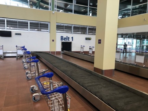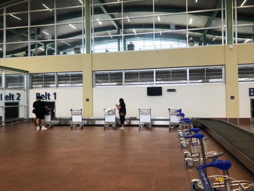 We arrived at the baggage claim area ahead of most people. The carts were already placed across the conveyor belt by airport staff.