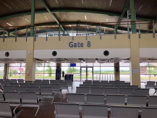 One of the boarding gates at the second level