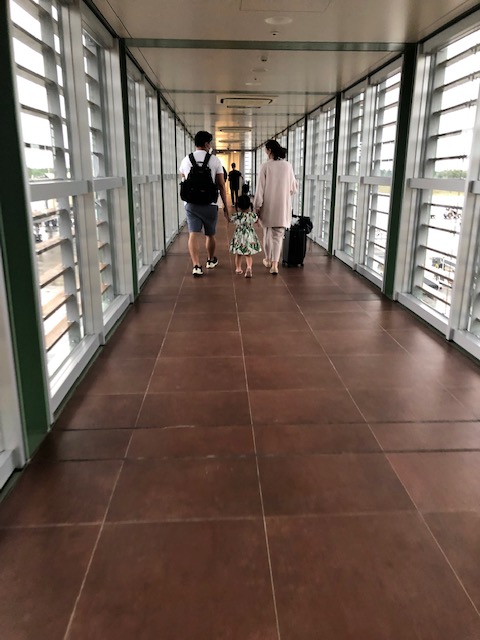 A family walks to board the awaiting aircraft bound for Manila.