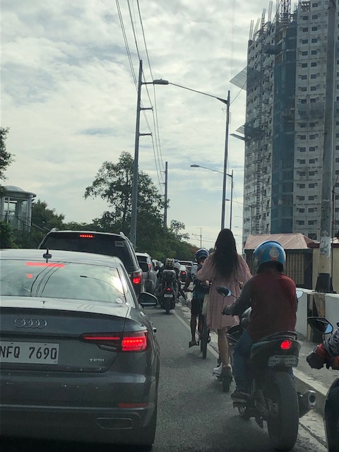 I just wanted to share a couple of photos I took en route to BGC last week. Yes, the traffic is already terrible and yes, I drove to BGC (or more accurately, I was driven as we were hauling stuff to our home away from home at BGC). I couldn’t help but take photos of the motorcycles and bicycles passing our vehicles. These were definitely more efficient forms of travel considering they require less space and likely incur less travel times. In addition to these modes (and walking, of course), there seems to be an increasing popularity for other micro mobilities. I wouldn’t define and enumerate these emerging modes but you’ve probably seen some of them along your commutes – electric kick scooters (EKS), gas-powered versions of these scooters, other forms of electric vehicles including trikes, etc. Here are a couple of examples I captured in photos last week.