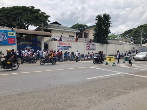 Road and traffic environment in front of the main gate of a high school in Zamboanga City