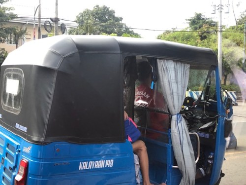 We came alongside this tuktuk-type tricycle. The model produced by Piaggio is not the motorcycle & sidecar combination that is the most common type of motorized 3-wheeler in the country. The latter currently has a one passenger limit due to the health protocols instituted in light of the pandemic. The layout of the former, however, allowed for a physical barrier in the middle of the back seat that allowed for 2 passengers for the trike.