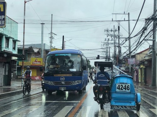 We came alongside this tuktuk-type tricycle. The model produced by Piaggio is not the motorcycle & sidecar combination that is the most common type of motorized 3-wheeler in the country. The latter currently has a one passenger limit due to the health protocols instituted in light of the pandemic. The layout of the former, however, allowed for a physical barrier in the middle of the back seat that allowed for 2 passengers for the trike.