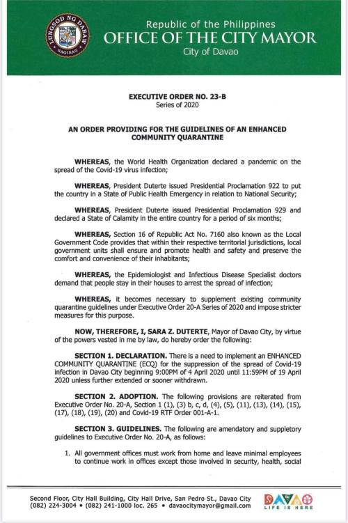 On Davao’s Executive Order No. 23 allowing tricycles as a transport mode during the ECQ