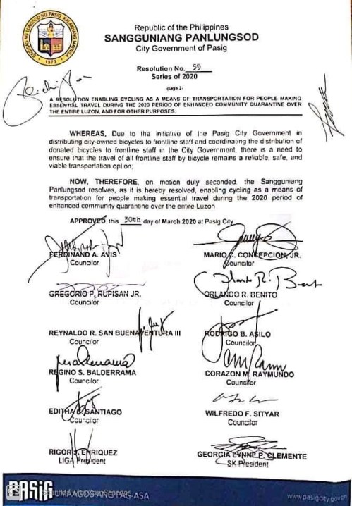 I am posting a couple of LGU issuances that would be good references to other LGUs as we all tread along through these quarantines, curfews and lockdowns (or whatever it is they call it these days). First off is the Ordinance from Pasig City. The city has been in the news quite frequently for the very progressive, responsible and active handling of the situation led by its popular mayor Vico Sotto. His policies and programs are claimed to be based on data or information on his constituents that his team is using with much efficiency. This shows us how data analytics can prove useful in times of crisis such as the Covid-19 pandemic. The ordinance also shows a grasp of realities for transport and the so-called “new normal” that people have been talking about once we transition out of the quarantines and lockdowns.