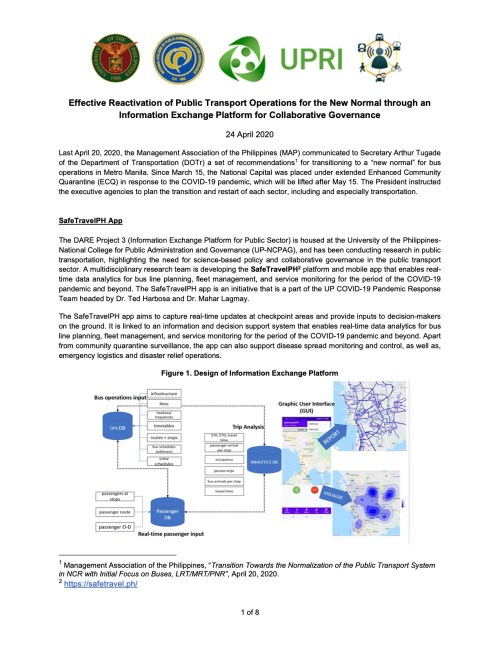 Here are the recommendations of UP COVID-19 Pandemic Response Team: “Effective Reactivation of Public Transport Operations for the New Normal through an Information Exchange Platform for Collaborative Governance”