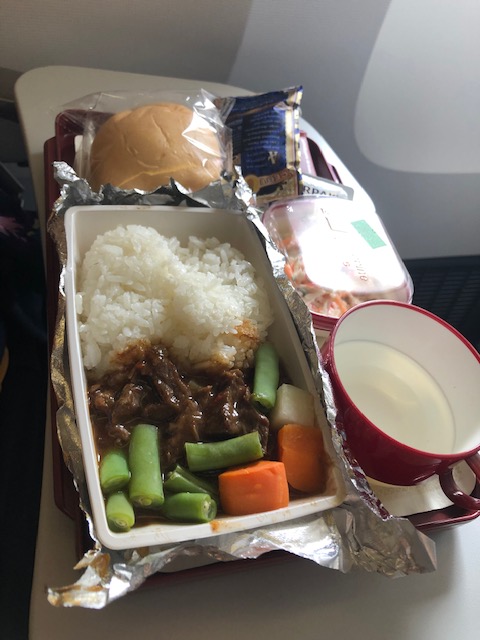 On the flight back to Manila, we both had beef and pasta