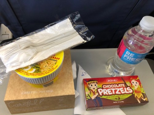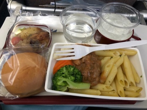 I opted for the chicken and pasta dish. The meal also included dried pineapple that you can have as dessert or snack (for later during the flight).