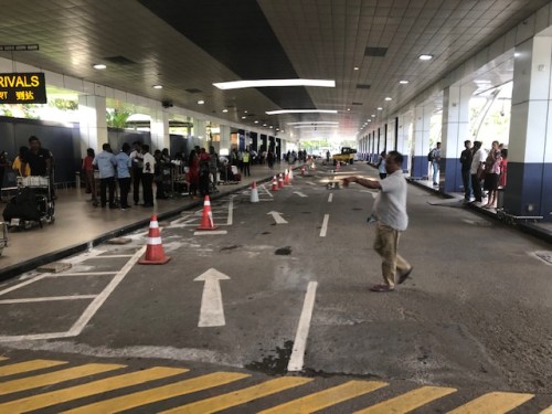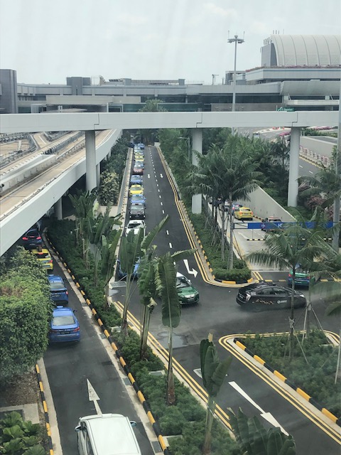 One of the driveways at the arrivals area. This was for private vehicles picking up arriving passengers. We crossed this to get to the driveway where our Uber car was waiting for us.