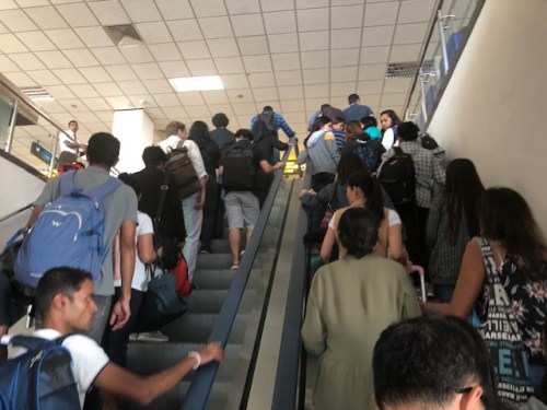 Upon disembarking from our buses, passengers ascend towards the immigration section