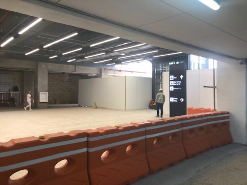 The corridor to the transport terminal is unfinished but the path is spacious enough as shown in the photo.