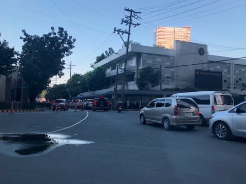 Vehicles bound for Poveda (building is in the background) and EDSA.