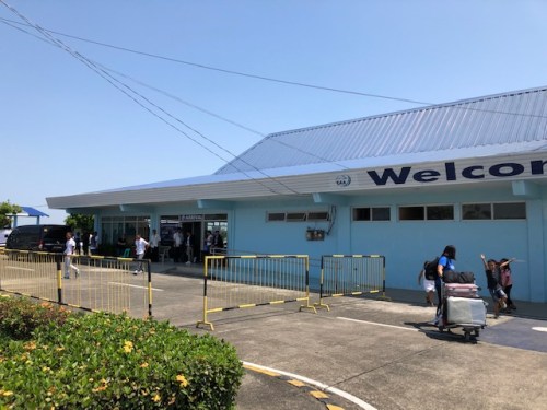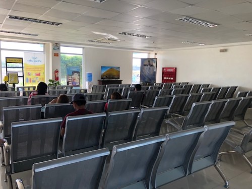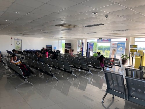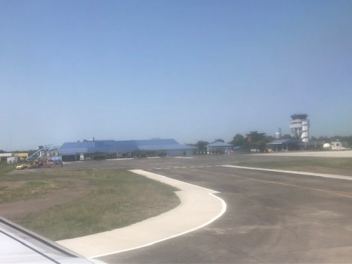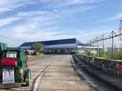 View of the airport terminal as we approach it on board tricycles