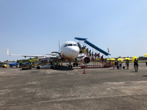Passengers walk to the terminal with each given an umbrella to shield themselves (partially) from the punishing heat of the sun. Isabela is one of those provinces where the heat indices reach well above 45 degrees C.