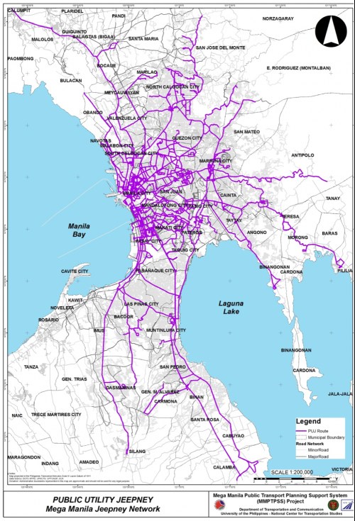 Jeepney route coverage for Mega Manila (2012)