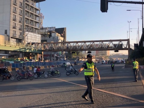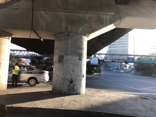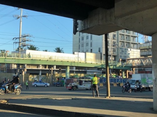 The signs announcing the closure of the Tandang Sora flyover along Commonwealth Avenue are doing the rounds of social media. So are the traffic management plans (i.e., the re-routing maps for the area) that are being shared by many and soliciting a variety of reactions. The reactions are often angry or sad for those likely affected by the closure and the re-routing via Luzon Avenue, Congressional Avenue and Philcoa. The demolition of the flyover to give way to the future MRT-7 station will definitely lead to traffic congestion and longer travel times to a lot of commuters, whether using public or private transportation. However, there are only few comments so far about the impacts on pedestrians. Will the pedestrian footbridges be demolished, too? Will they be redesigned or replaced considering the high volume of pedestrians crossing this major intersection? Following are photos taken underneath the Tandang Sora flyover as we waited to make a U-turn. These show the pedestrian footbridges in the area that allow people to safely cross the wide Commonwealth Avenue.
