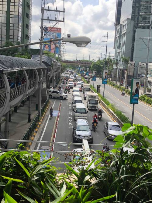 The middle lanes of the carriageway are wide and can accommodate motorcycles though the latter always seem to prefer filtering or splitting the lanes. The median lanes are generally for low occupancy vehicles (less than 3 passengers) while the middle ones are for high occupancy vehicles (3 or more passengers) including UV Express vans and buses.