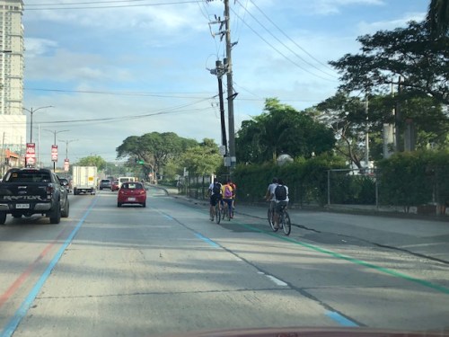 Here are cyclists using the lane past Ateneo’s Gate 3 and approaching the main gate of Miriam College