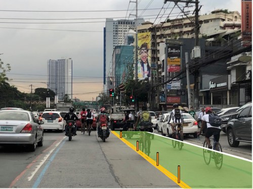 Bike lane along the northbound side of Katipunan approaching Ateneo’s Gate 2