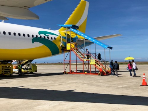 Meanwhile, smaller aircraft such as the turboprop plane below have built-in stairs. But these planes are lower compared to the larger Airbus 321’s we flew on our way back home.