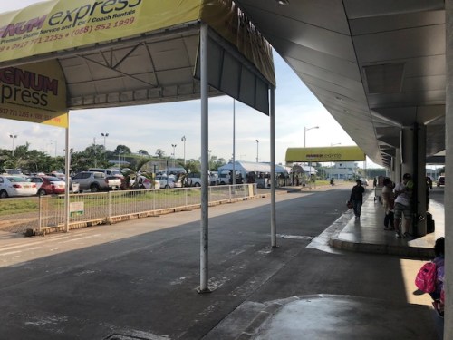 An arriving passenger’s view of transport service providers upon exiting the airport terminal