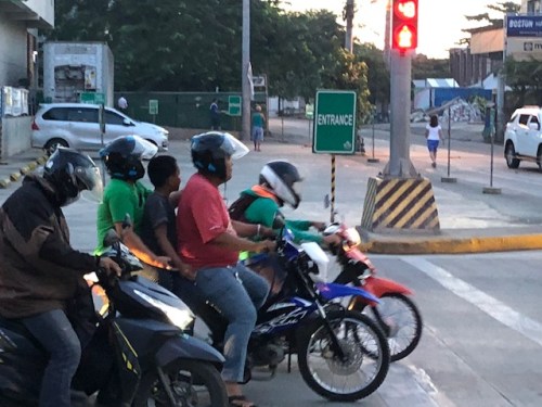 Non-Angkas motorcycle taxis are not so obvious and easily blend in with motorcycles with one (or more) passengers. The Angkas in the photo actually violates its own rules regarding number of passengers with the child also not wearing a helmet.