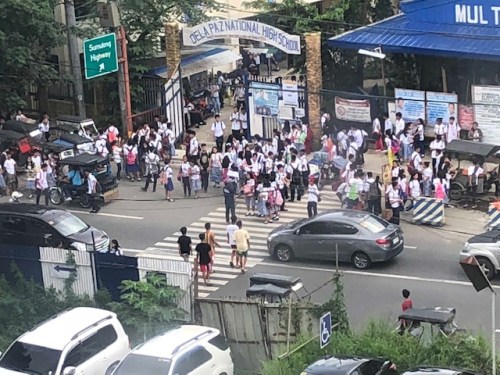 Students come out of the school to mainly either walk or take public transport (mostly tricycles) to their homes.