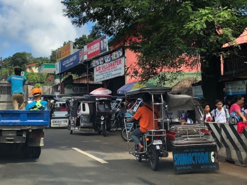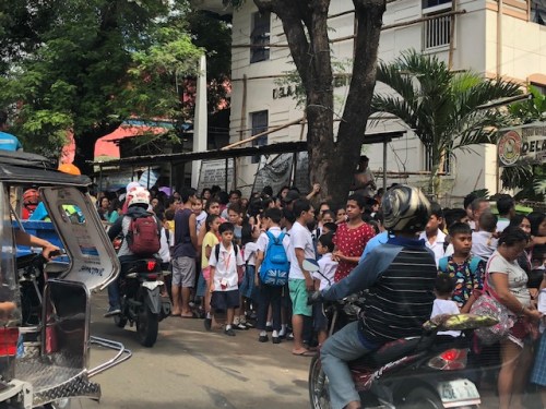 Causing some congestion were tricycles manoeuvring as they brought in students. Those waiting for their potential or intended (sundo) passengers were lined up along the curb side.