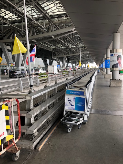 After alighting from the taxi, I took this photo of the luggage carts neatly filed and ready to be taken to the terminal.