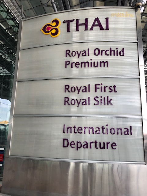 Sign for the national flag carrier whose hub airport is Suvarnabhumi.
