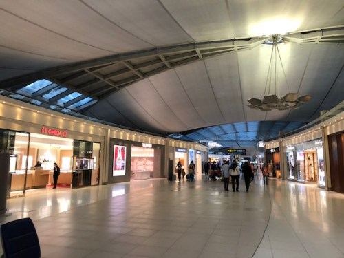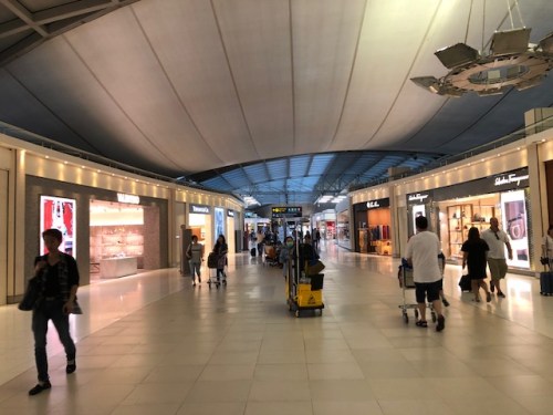 Going up the escalator for the final airport security check and the immigration counters, I took this photo of the spacious terminal.