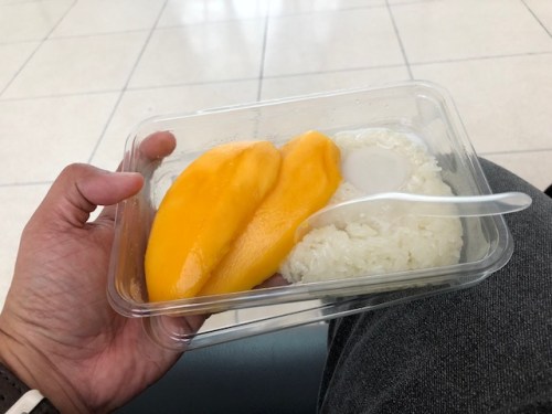 I enjoyed my mango with sticky rice while waiting for my boarding call.