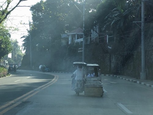 A smoke-belching tricycle along Daang Bakal in Antipolo City
