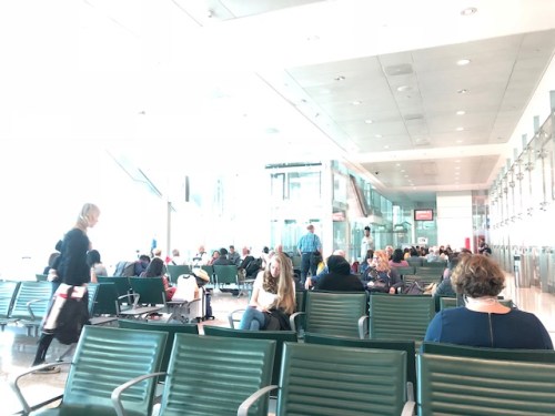 This was our boarding gate at about 5:00 AM. Notice it was still dark outside.
