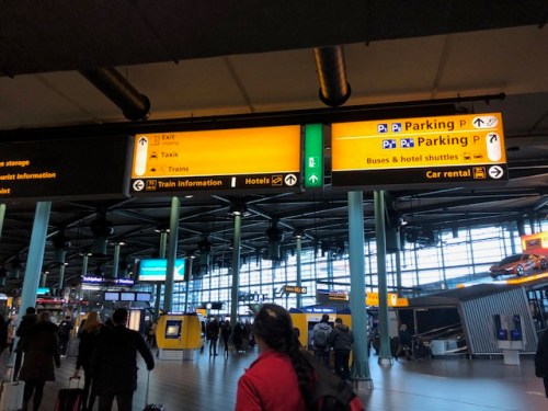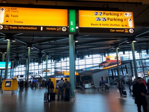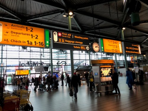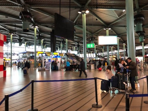 Travelers at Schipol airport