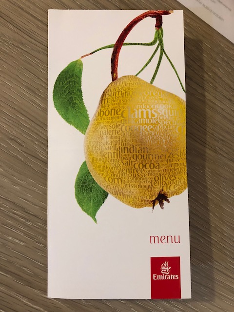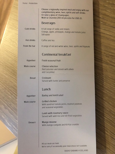Menu on the Dubai-Amsterdam leg of my trip