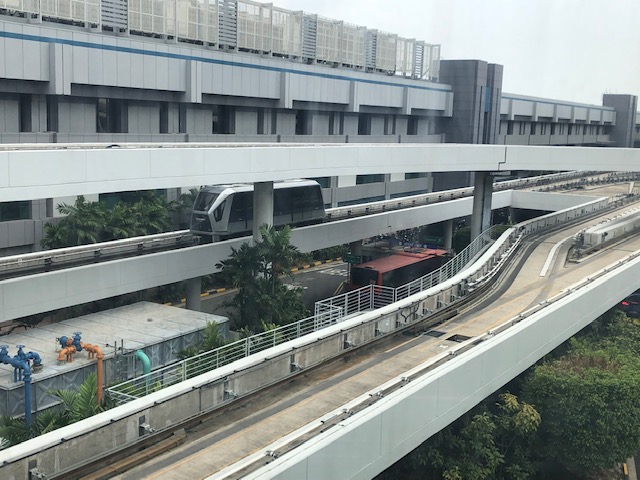 Changi AGT slow down for passengers to have a good close view of the Jewel