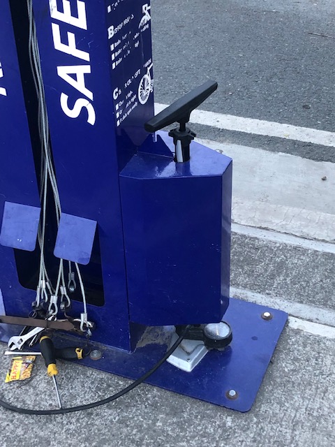 We need more of these especially along the major roads used by cyclists; especially those who bike to work. Granted that there are many bike shops and perhaps the vulcanizing shops as well as cyclists bringing their own tools and pumps but you never know when you will need some tools or perhaps a pump to inflate tires. Of course, these will need to be secured as there are people who have the propensity to steal, damage or vandalize tools.
