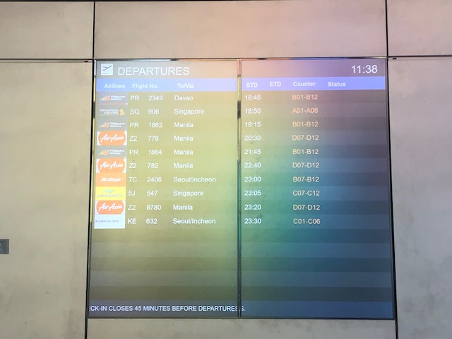 The view upon alighting from the vehicle that took us to the airport – note the advisory stating Cebu Pacific departures are via the old Terminal 1.