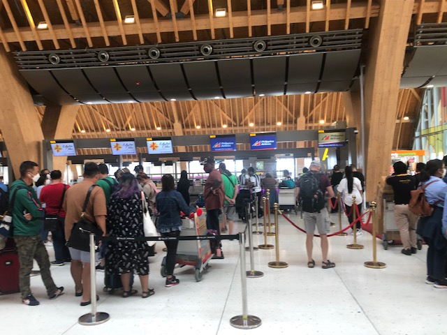 There were long lines not because the airport is crowded but because there were few check-in counters open. Even those who have checked-in online and were to drop-off their bags were not spared the queues.