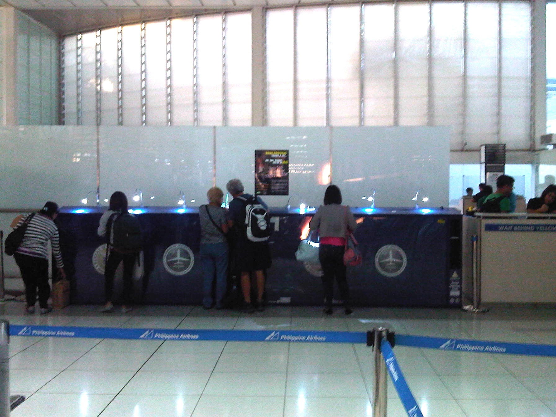 Passengers checking-in at NAIA T2. There are no internet check-in booths (for those who already checked-in online and would just drop-off their luggage) or automated check-in machines at Terminal 2. PAL needs to work on these services for more efficient services at the terminal.