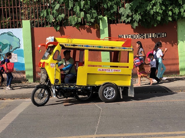 Our recent trip to Cagayan de Oro reacquainted us with their paratransit. While they looked like tricycles at first glance, they are actually 4-wheeled. Instead of a motorcycle with side car (with one wheel), this is a motorcycle fitted with a body that has two wheels (total 4). These are called motorela, which look like the Thai tuktuk.