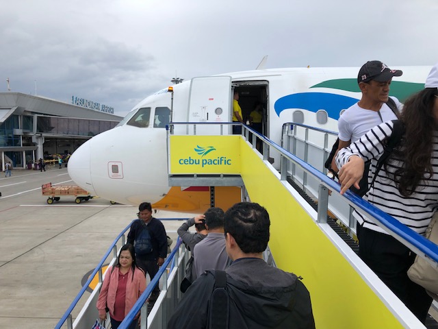 Meanwhile, smaller aircraft such as the turboprop plane below have built-in stairs. But these planes are lower compared to the larger Airbus 321’s we flew on our way back home.
