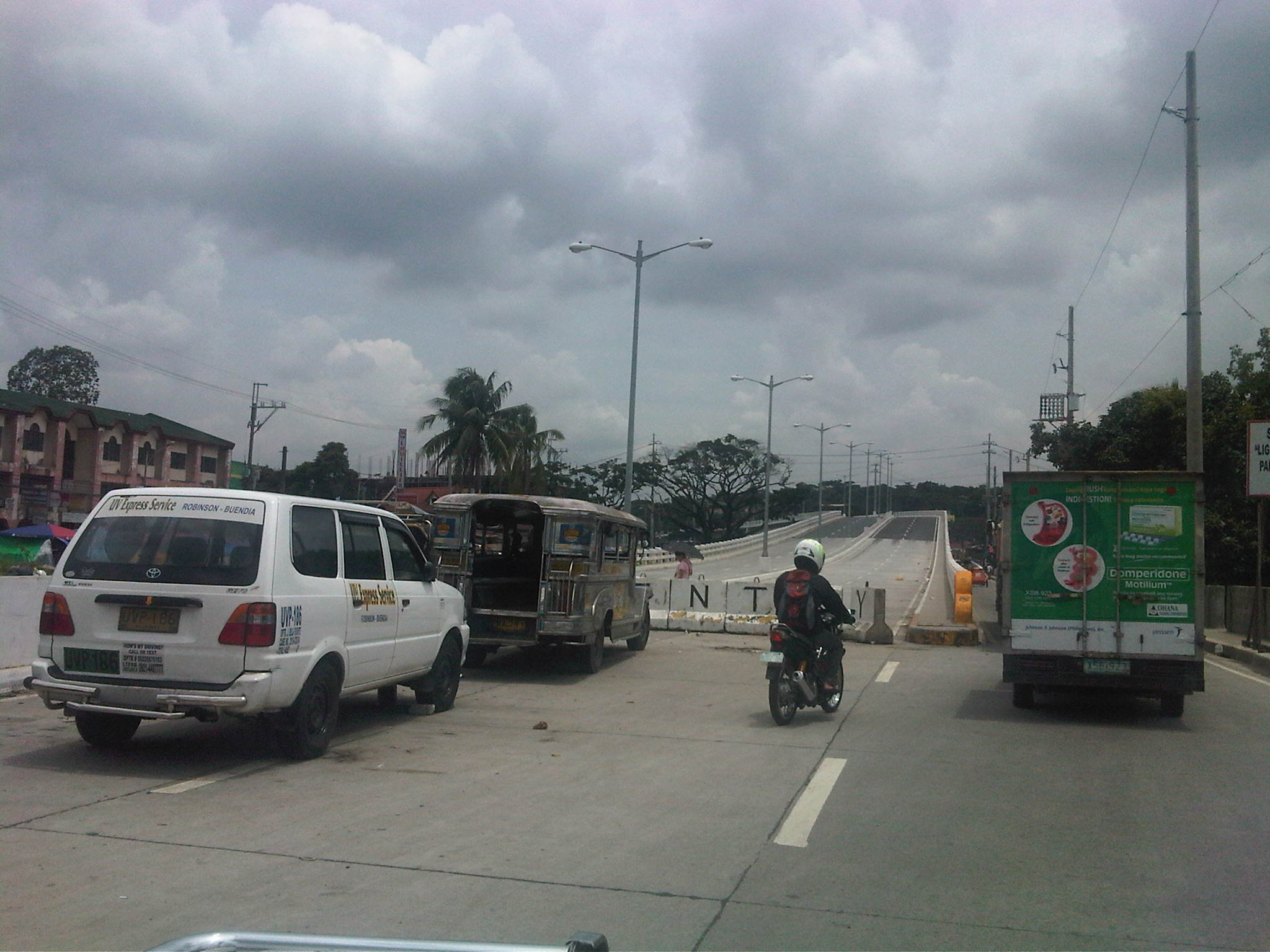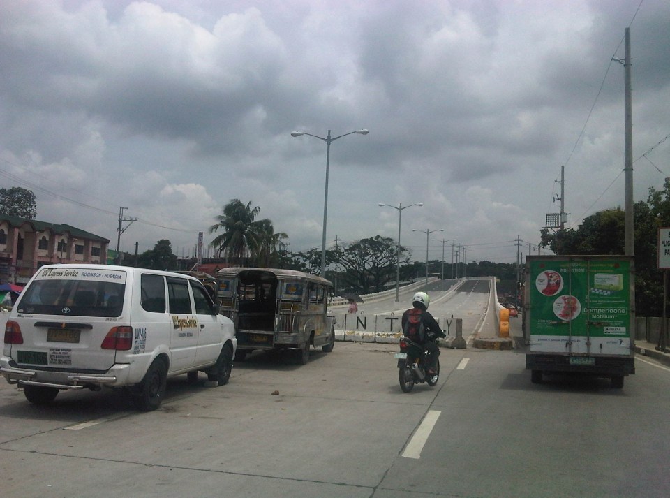 Approach at the north end of the bridge across Commonwealth Avenue – the south end connects to Tandang Sora Ave. near the University of the Philippines Diliman campus. The south end approach is partly finished and allows only right turns from Tandang Sora towards the bridge or to the one-lane service road that leads to Fairview-bound side of Commonwealth.
